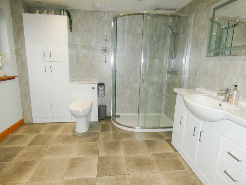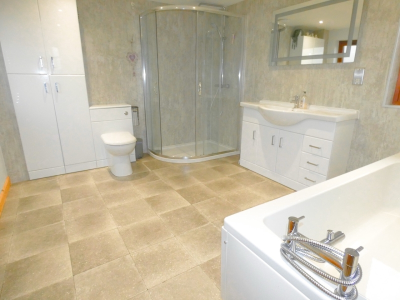 The accommodation comprises kitchen/dining room, conservatory, hallway, utility room, WC, bedroom, vestibule, living room with wood burning stove, sitting room/dining room with multi fuel stove all on the ground floor with a bathroom, four bedrooms and a shower room on the first floor.